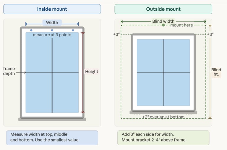 For inside mounts, you're measuring the exact interior dimensions of your window opening. Here's how: